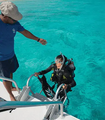 Your instructor may have you practice exiting the water by climbing a ladder.