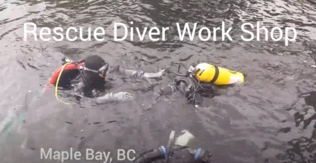 We are in Maple Bay, BC just a few kilometers from Duncan and home of Pacific Water Sports in the Cowichan Valley, training is controlled area just off the dock. One of the keys to becoming an outstanding rescue diver or rescue diver instructor is repetive practice with rescue skills. With our instructor student here we are practicing a rescue scenario which is part of the PADI OWSI instructor training course. Instructor candiates practice this and many other diving compontents many, many times before they are finally evaluated by a PADI examiner and upon successful completing to the evaluation will become a PADI Instructor.